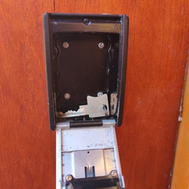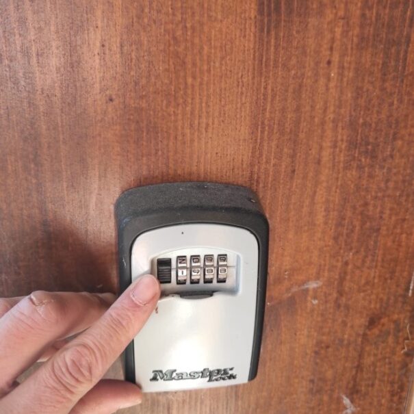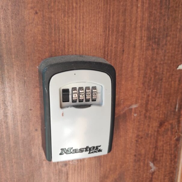 3. Prendre la clé pour ouvrir ou fermer, puis la remettre dans le boitier et mélanger les chiffres.Depuis l’intérieur il est possible de verrouiller la porte en soulevant la poignée et en tournant le loquet.