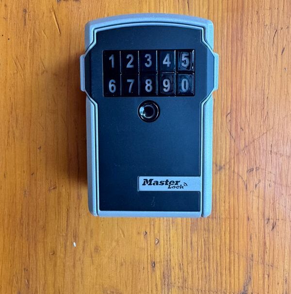 2. La clé se trouve dans la boite. Depuis l’intérieur vous pouvez verrouiller la porte en soulevant la poignée et en tournant le loquet.